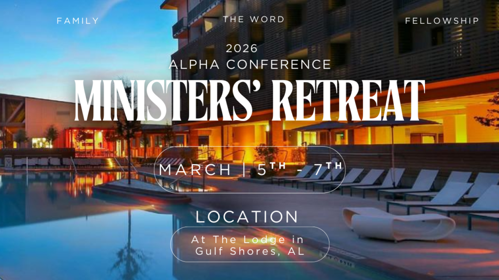 Join us for the Alpha Ministries 2026 Rejuvenate Ministers Retreat, March 5-7, 2026, at The Lodge in Gulf Shores, AL. This special time is designed for our ministers to come together for fellowship, encouragement, and...